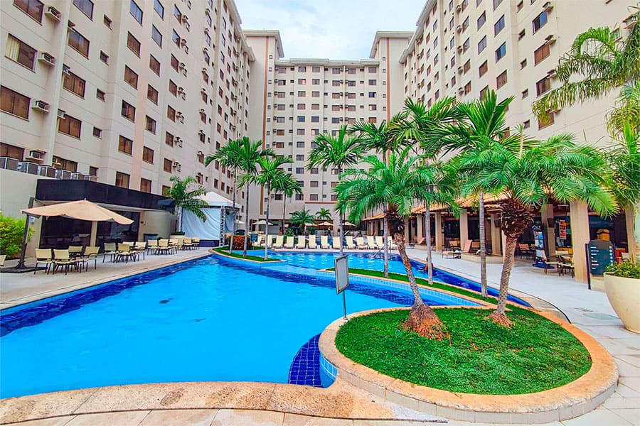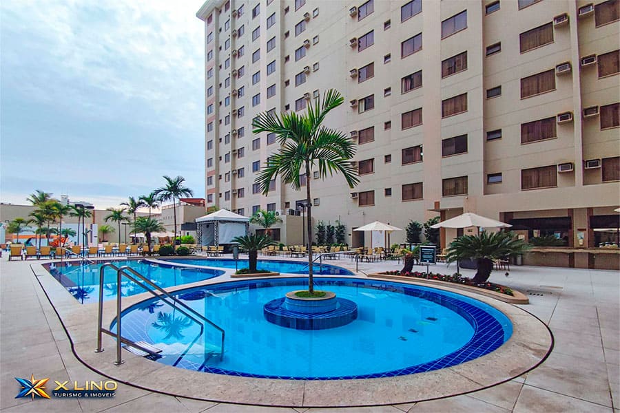O grande destaque é o parque aquático com piscinas 24h, para você aproveitar as águas termais a qualquer hora do dia ou da noite. Há manutenção e troca de água diária nas piscinas, oferecendo uma experiência mais agradável e segura.